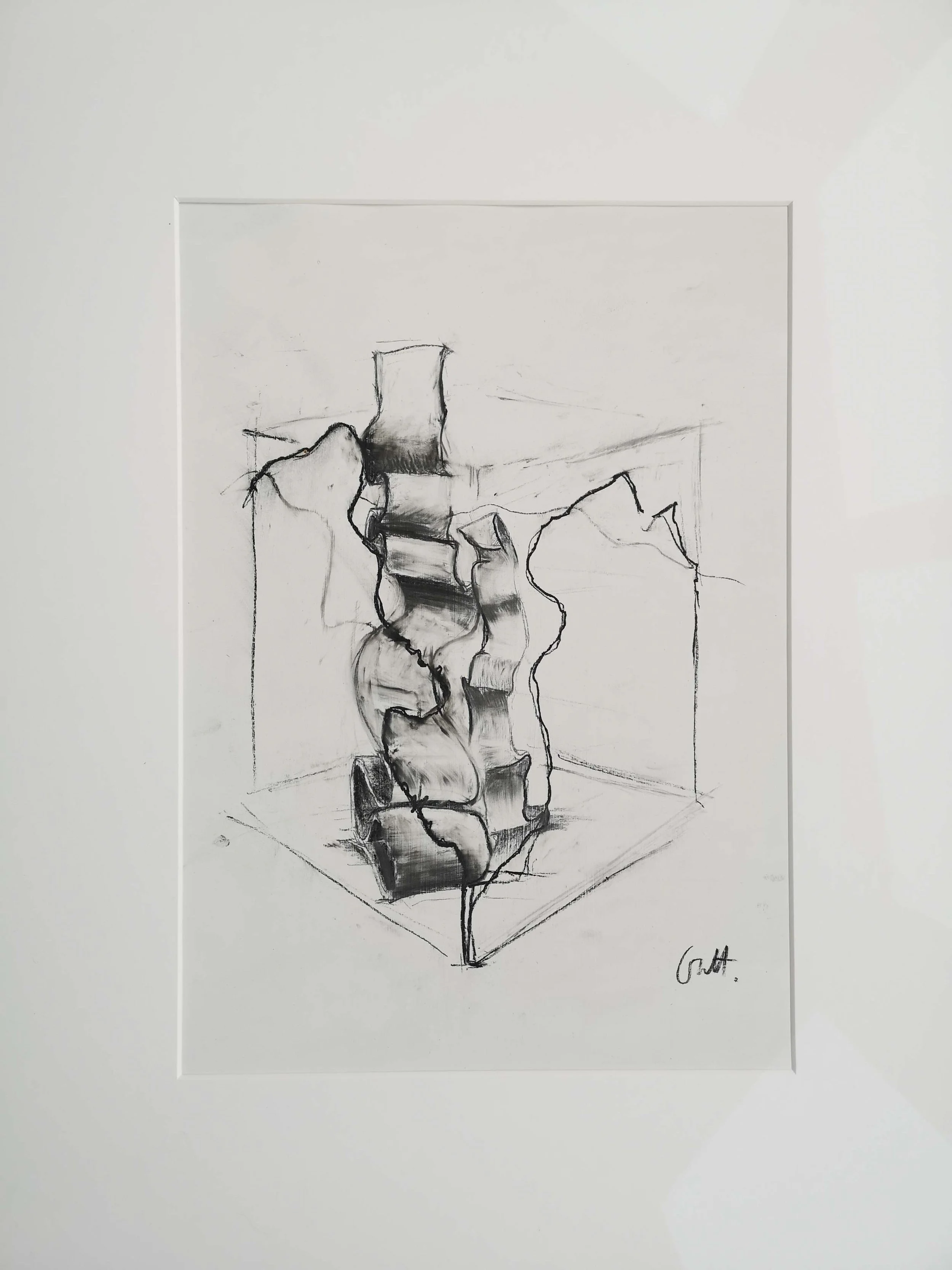 Charcoal and gesso on paper
