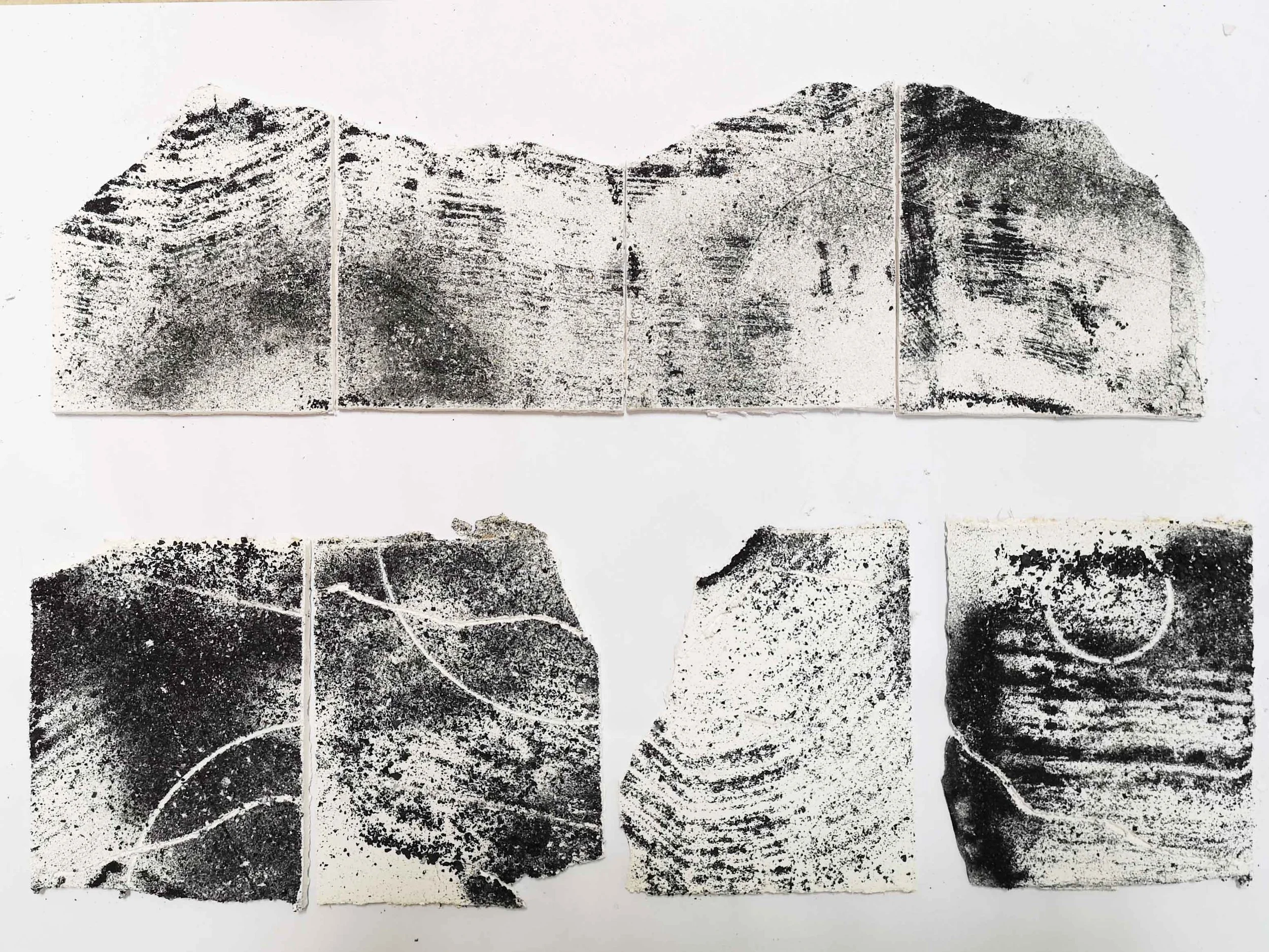 Coal dust monoprinted onto lime plaster